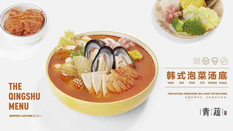 "Korean Kimchi Soup Base" is a vibrant, red broth made from kimchi and a secret blend of hot sauces. The unique combination of sour, spicy, and fragrant flavors makes this broth a perfect choice for a zesty, flavorful hot pot experience that’s both nourishing and satisfying.